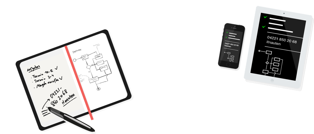 Mit einer Digital Pen & Paper Lösung werden Ihre Papierunterlagen automatisch und sofort digitalisiert. Die Umstellung auf diese Technologie erzeugt keinen Medienbruch und die bisherigen Arbeitsabläufe bleiben unverändert. Bis auf die Doppelarbeit.